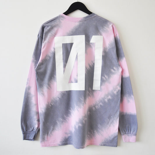 Pink & Grey Stripe Tie-Dye Micro Logo 01 LS T-Shirt