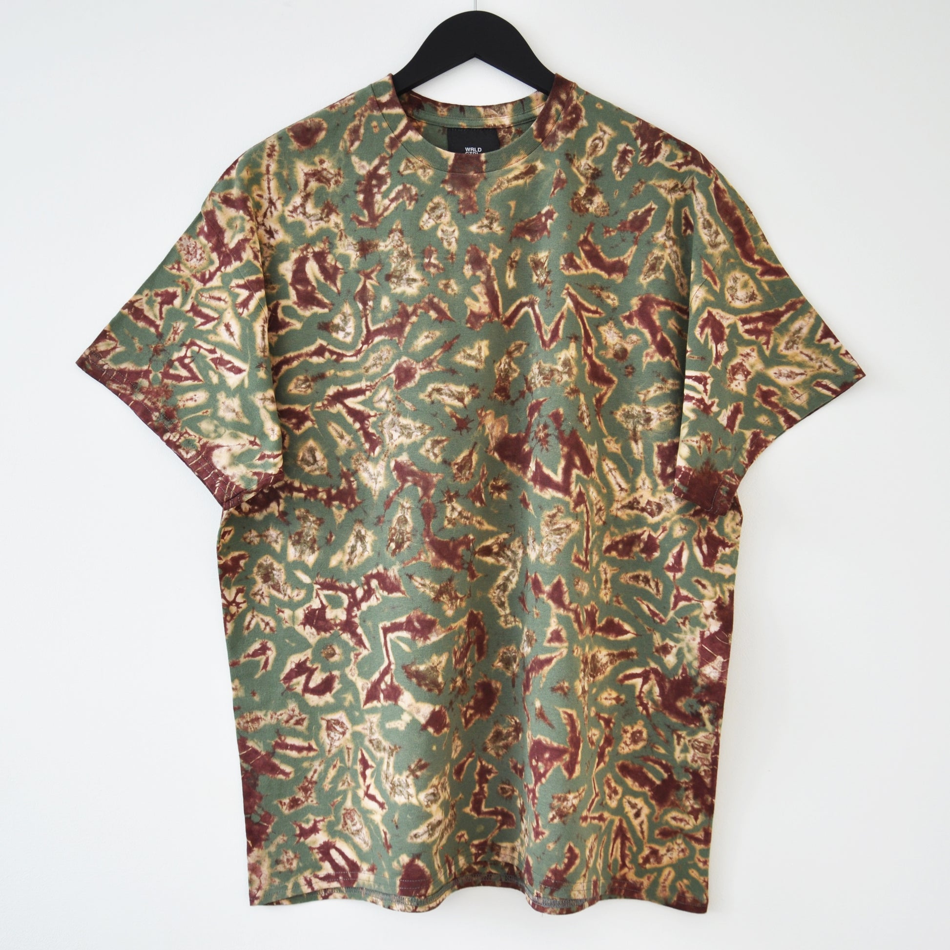 Camouflage reverse tie-dye T-shirt. Bleached then over-dyed in baroque brown.